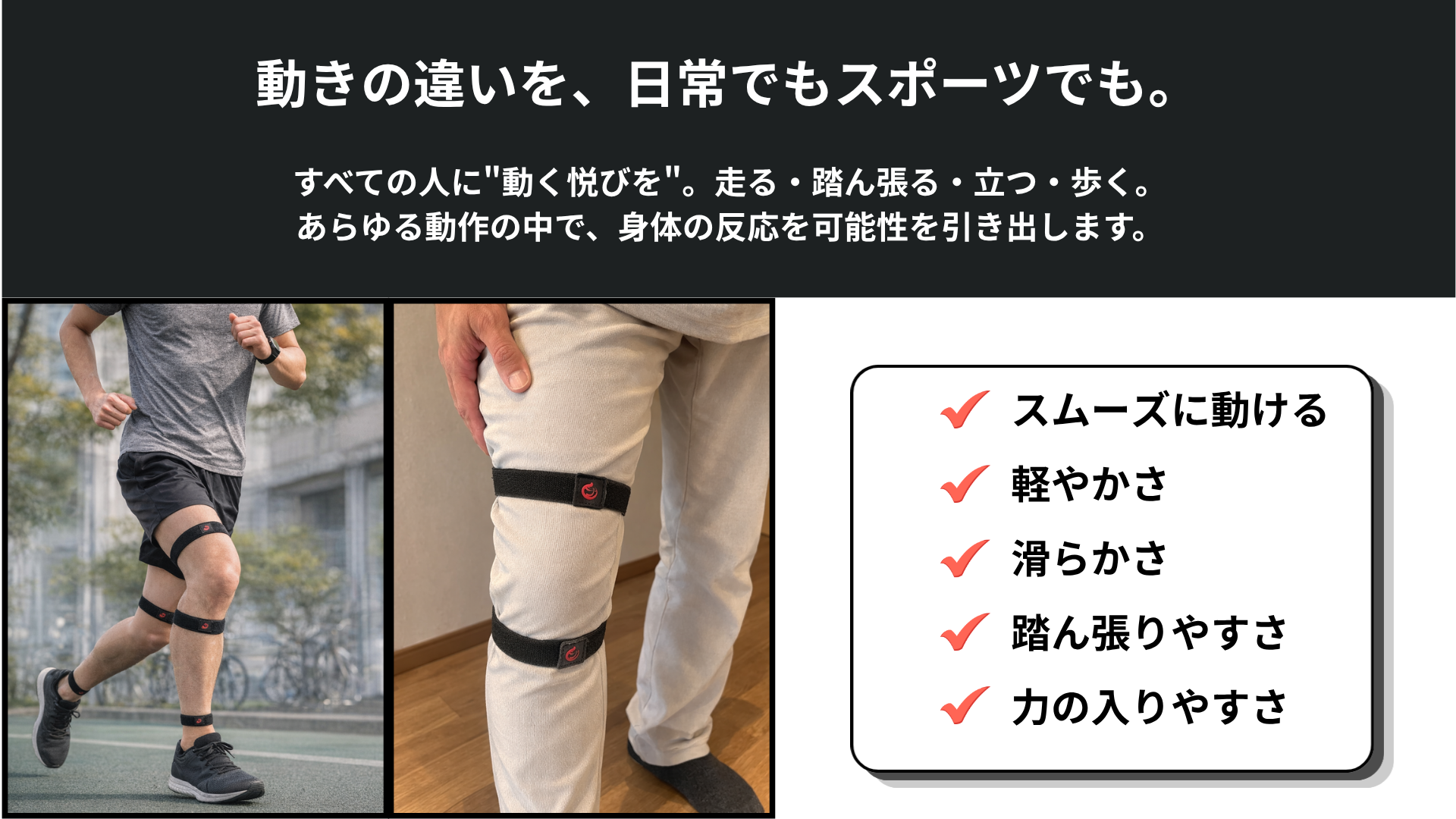 他にも重たい荷物を持ち上げたり、運動などしてみて体の動きの違いを体感してみてください。